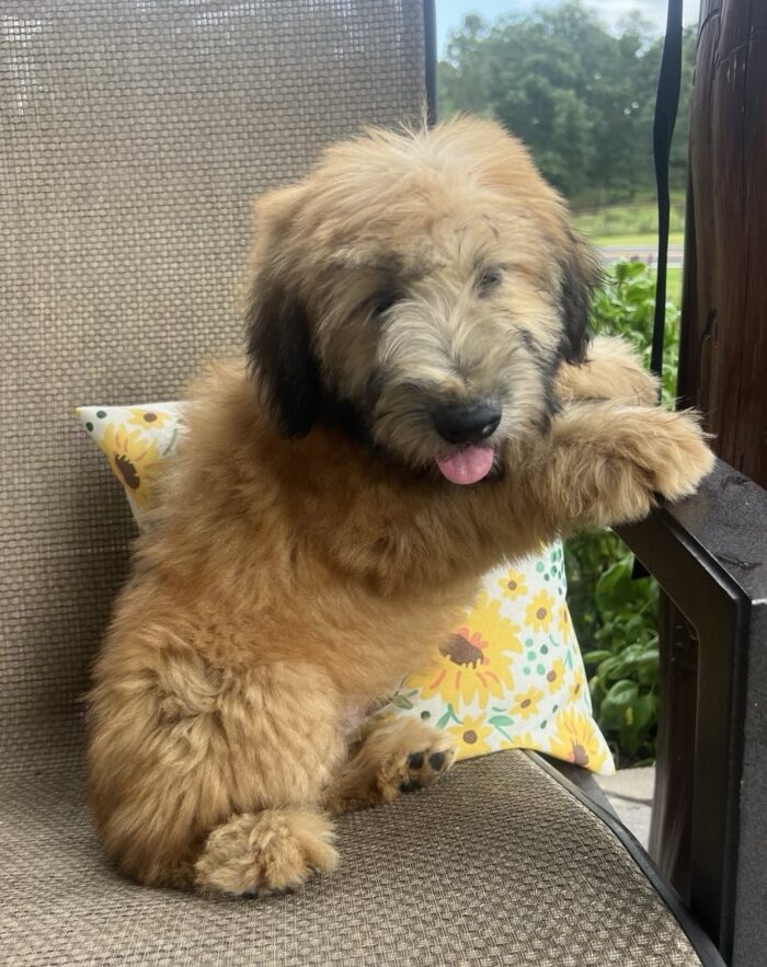 Our dreamily soft puppies are bouncy little fellows that will be sure to brighten your day and your life! Their parents are medium size and they should average 35-40 lbs. in adulthood. All our puppies are AKC registered and have a luxurious, wavy American coat. We carefully breed with an emphasis on excellent health, disposition, appearance, and form.