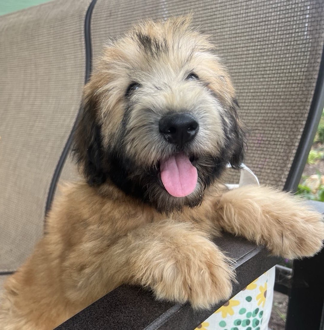Wheaten Terriers are non-shedding and hypo-allergenic which makes them an excellent choice especially for families with allergies. Our Wheaten Terriers are friendly to everyone, yet not noisy. We find that they bark just a little when a visitor arrives, but then are happy to just wag and lick and always hope for a little lovin’ in return! They adopt you along with all your loved ones!